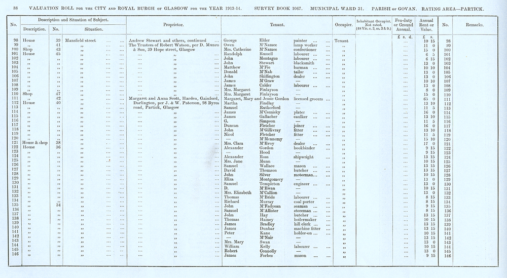 Glasgow Valuation Roll VR 1913-14, Ward 31, p088