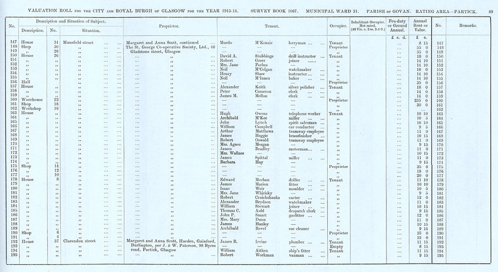 Glasgow Valuation Roll VR 1913-14, Ward 31, p089
