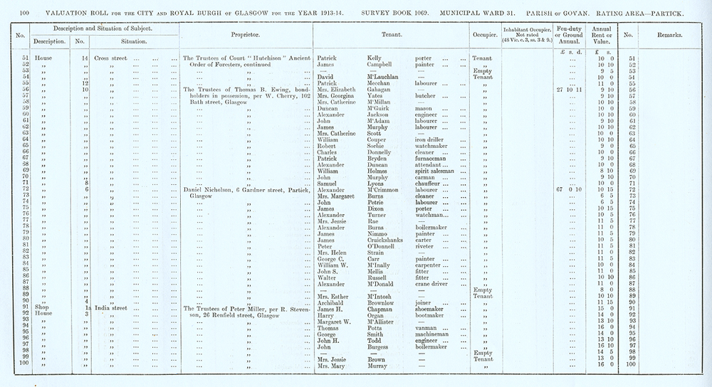 Glasgow Valuation Roll VR 1913-14, Ward 31, p100