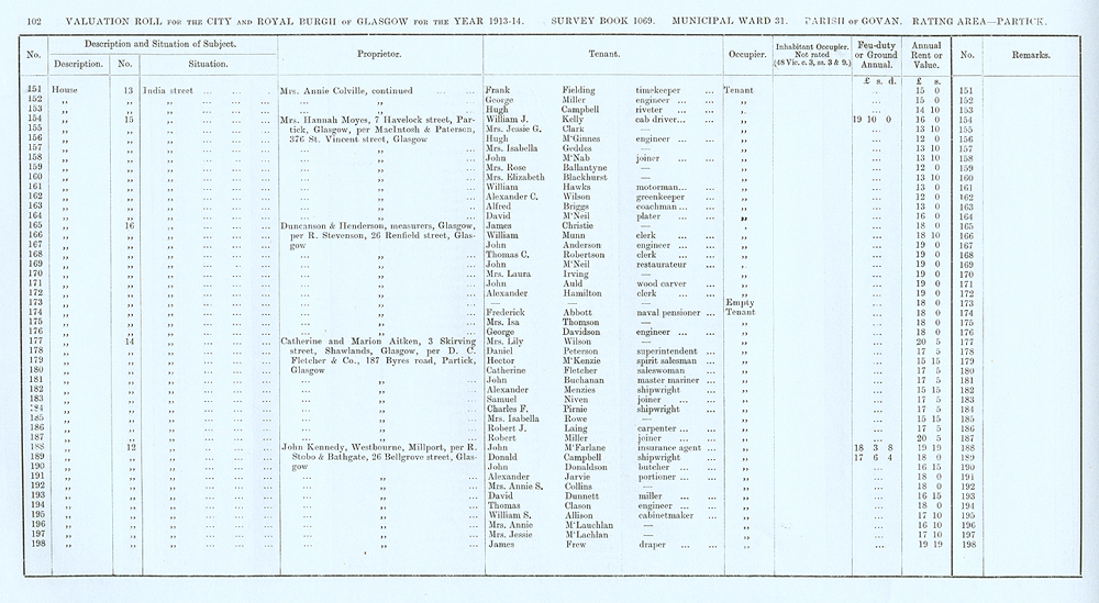 Glasgow Valuation Roll VR 1913-14, Ward 31, p102