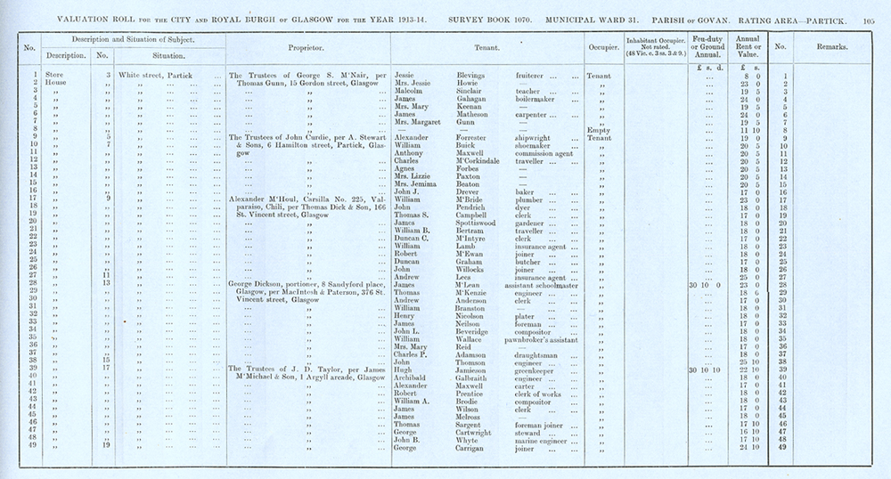 Glasgow Valuation Roll VR 1913-14, Ward 31, p105