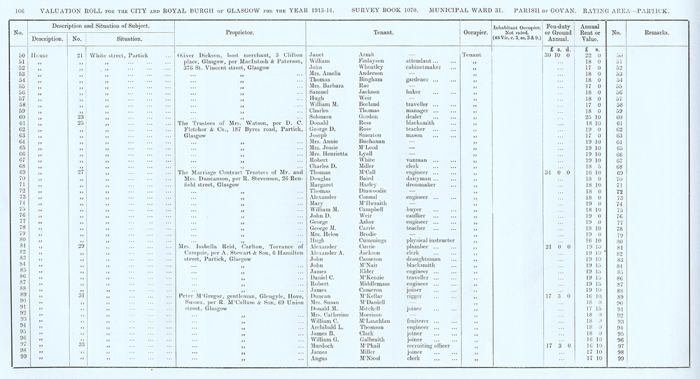 Glasgow Valuation Roll VR 1913-14, Ward 31, p106