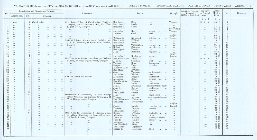 Glasgow Valuation Roll VR 1913-14, Ward 31, p111
