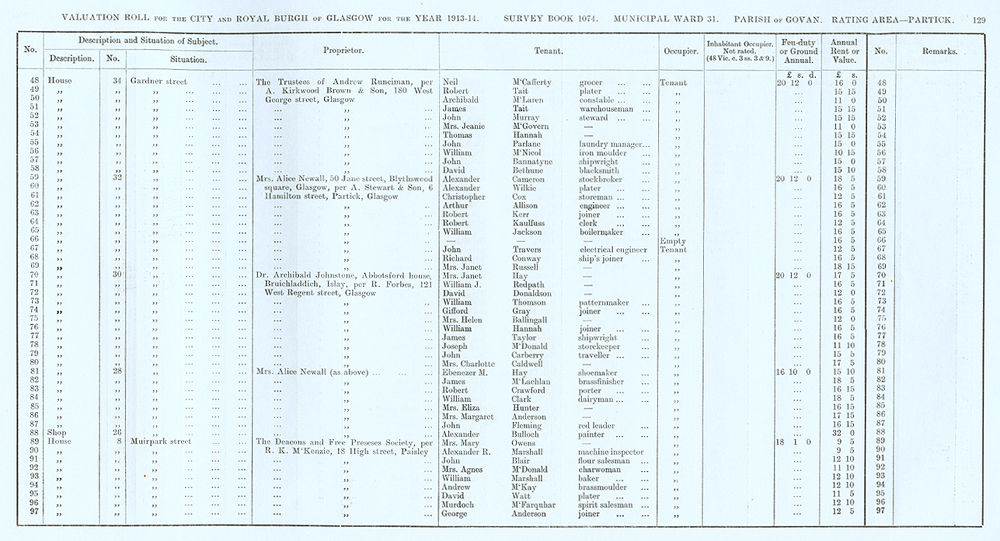 Glasgow Valuation Roll VR 1913-14, Ward 31, p129