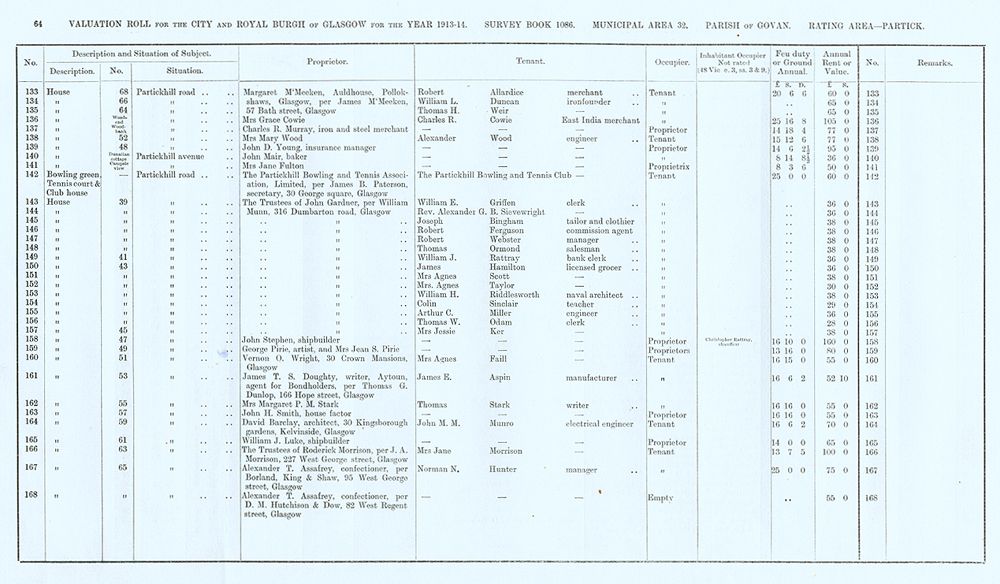 Glasgow Valuation Roll VR 1913-14, Ward 32, p064