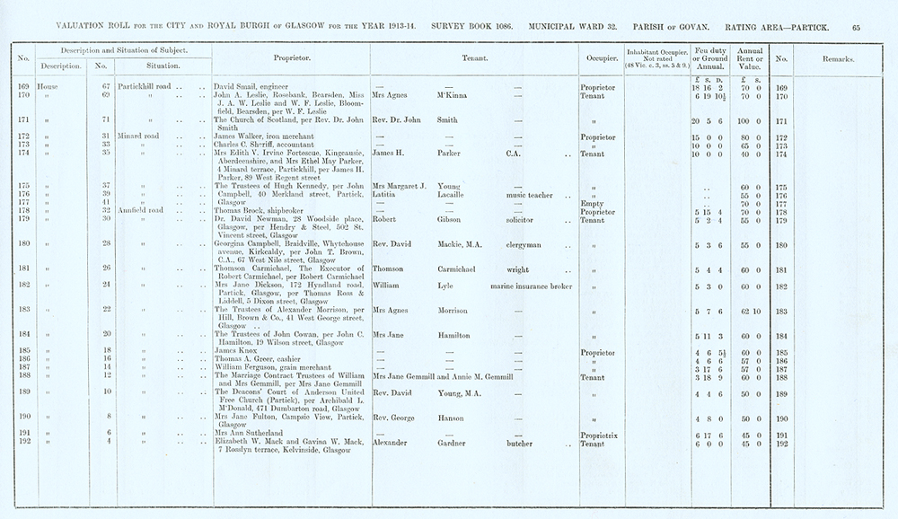 Glasgow Valuation Roll VR 1913-14, Ward 32, p065