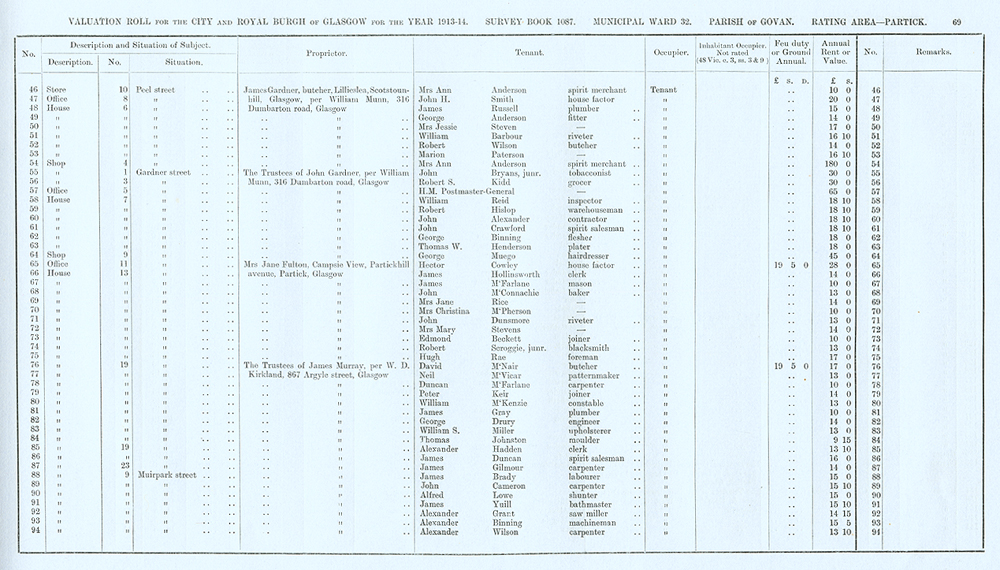 Glasgow Valuation Roll VR 1913-14, Ward 32, p069