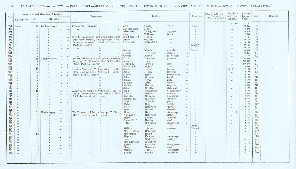 Glasgow Valuation Roll VR 1913-14, Ward 32, p072