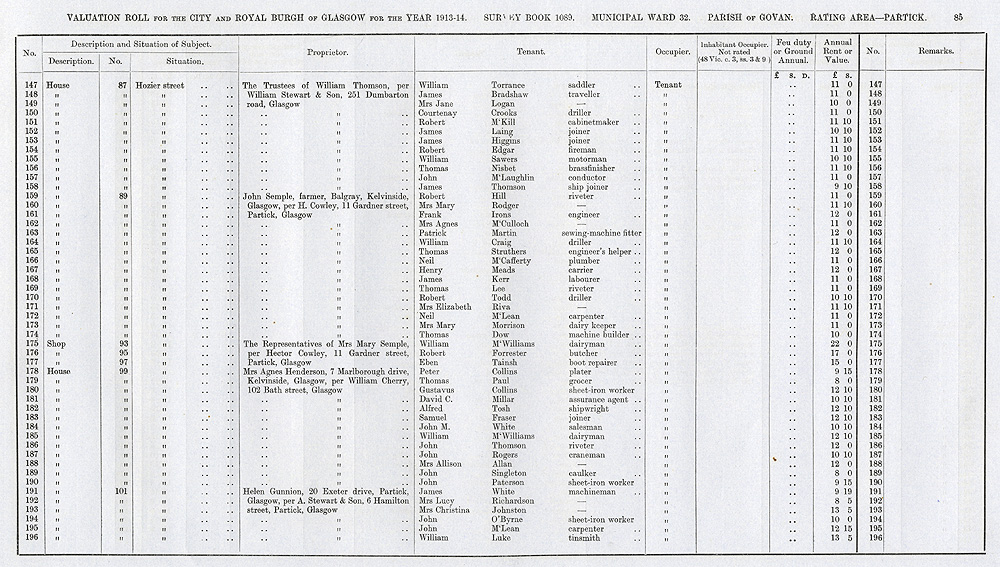 Glasgow Valuation Roll VR 1913-14, Ward 32, p085