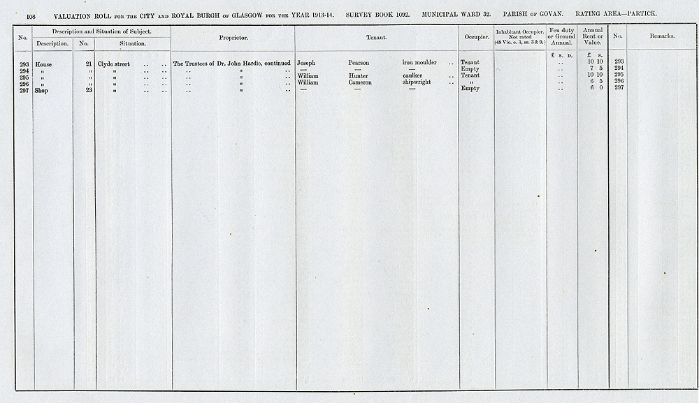 Glasgow Valuation Roll VR 1913-14, Ward 32, p108