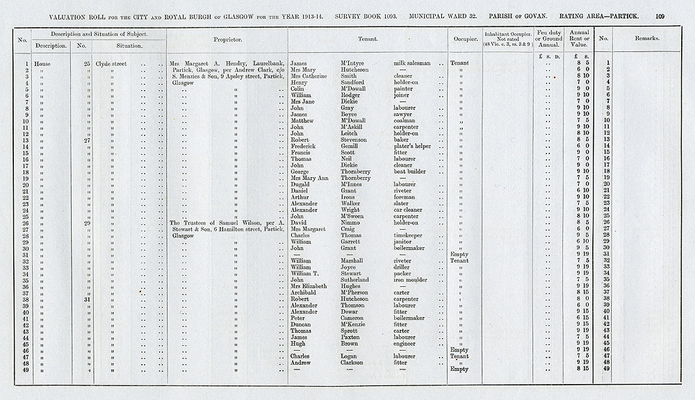 Glasgow Valuation Roll VR 1913-14, Ward 32, p109