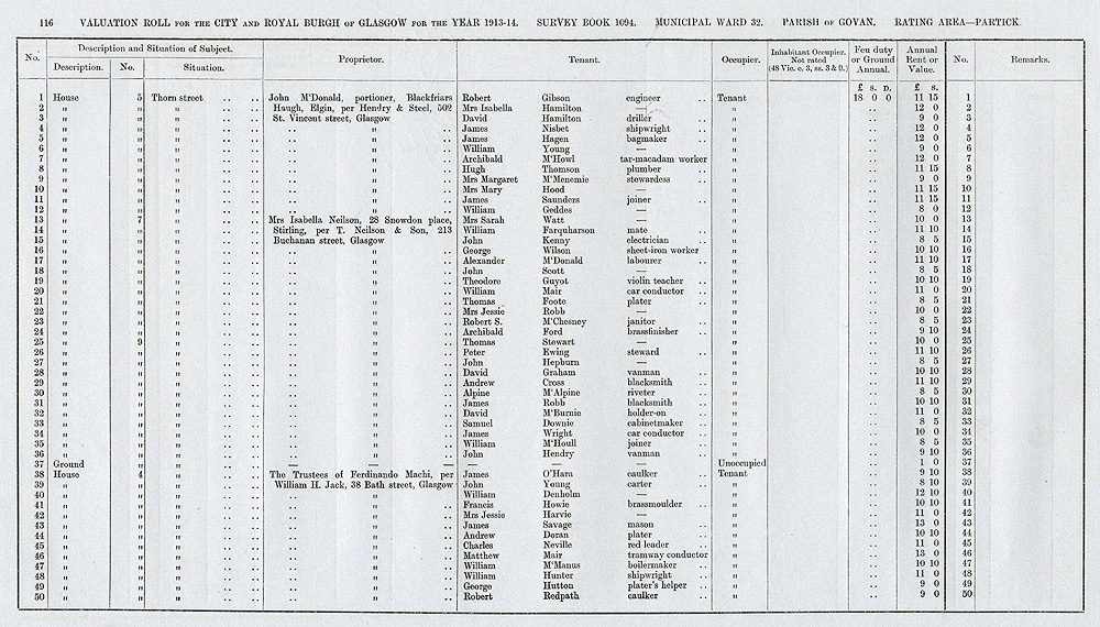 Glasgow Valuation Roll VR 1913-14, Ward 32, p116