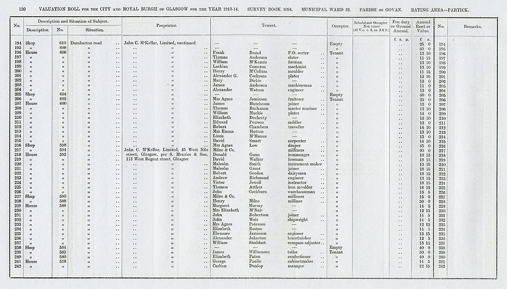 Glasgow Valuation Roll VR 1913-14, Ward 32, p120