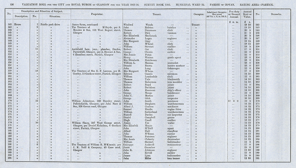 Glasgow Valuation Roll VR 1913-14, Ward 32, p126