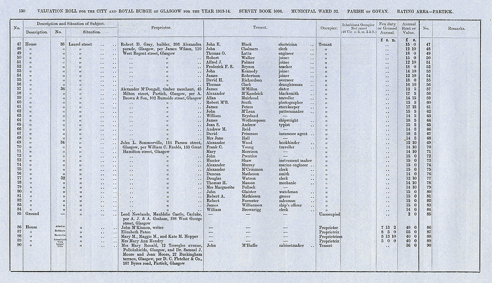 Glasgow Valuation Roll VR 1913-14, Ward 32, p130