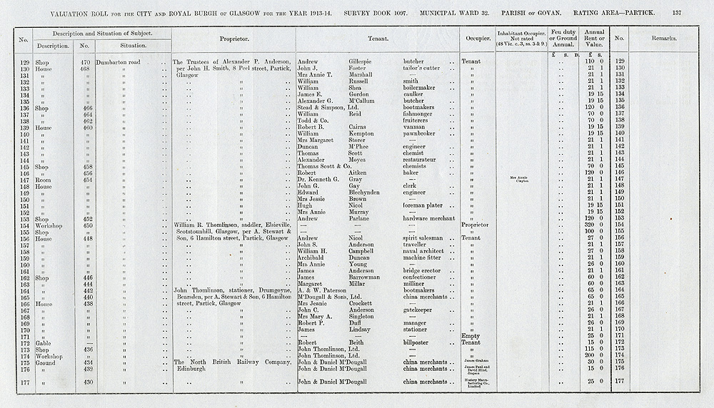 Glasgow Valuation Roll VR 1913-14, Ward 32, p137
