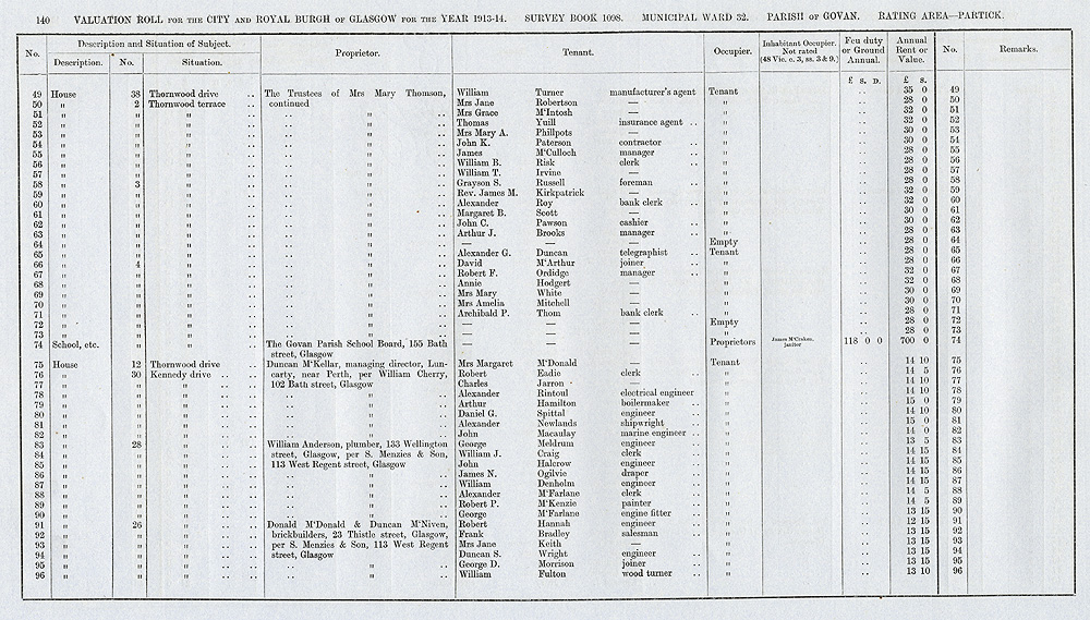 Glasgow Valuation Roll VR 1913-14, Ward 32, p140