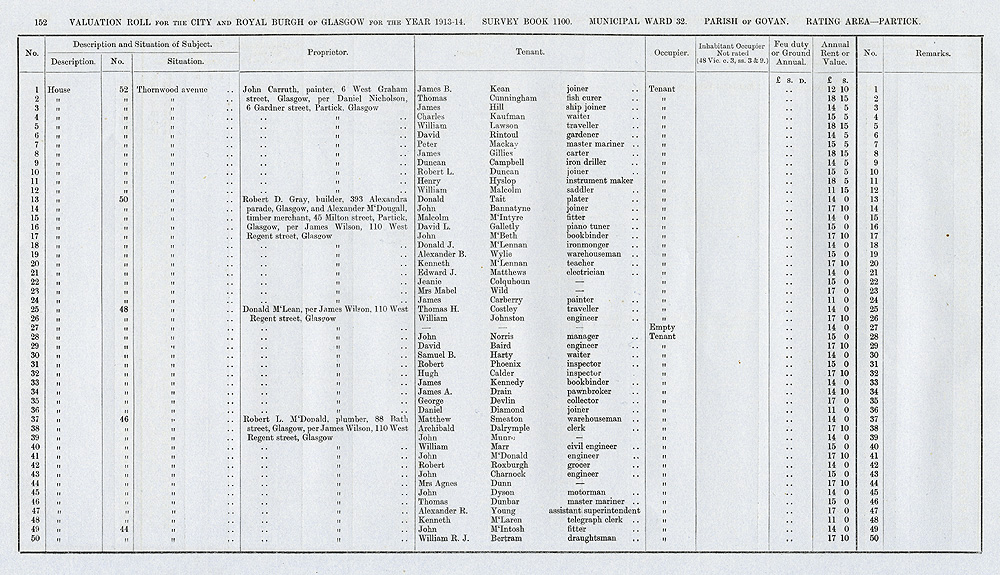 Glasgow Valuation Roll VR 1913-14, Ward 32, p152