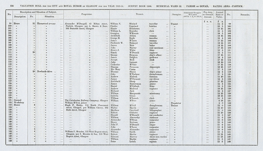 Glasgow Valuation Roll VR 1913-14, Ward 32, p154