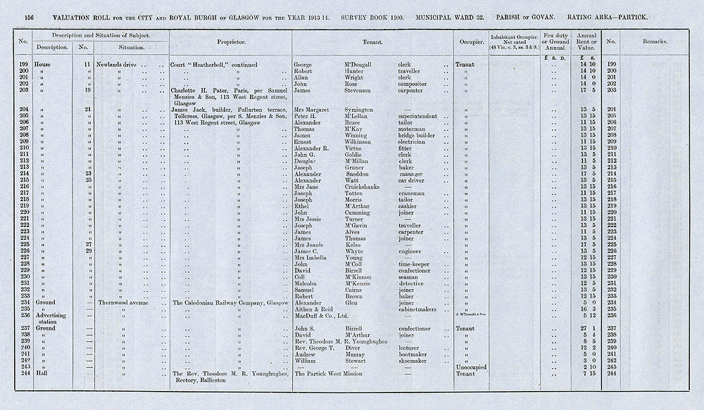 Glasgow Valuation Roll VR 1913-14, Ward 32, p156