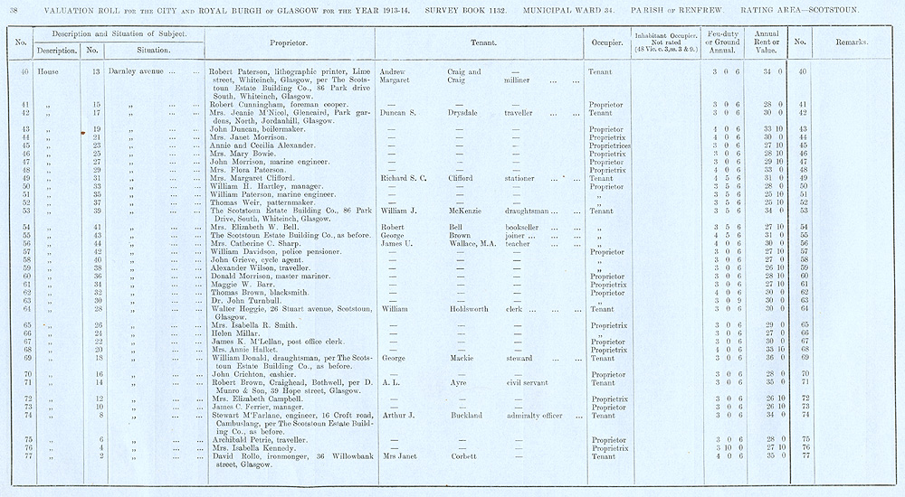 Glasgow Valuation Roll VR 1913-14, Ward 34, p038