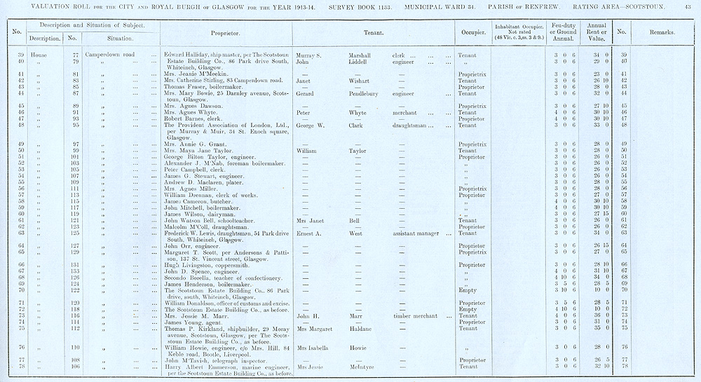 Glasgow Valuation Roll VR 1913-14, Ward 34, p043