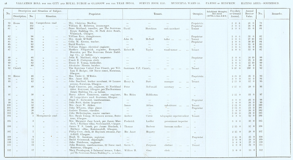 Glasgow Valuation Roll VR 1913-14, Ward 34, p044
