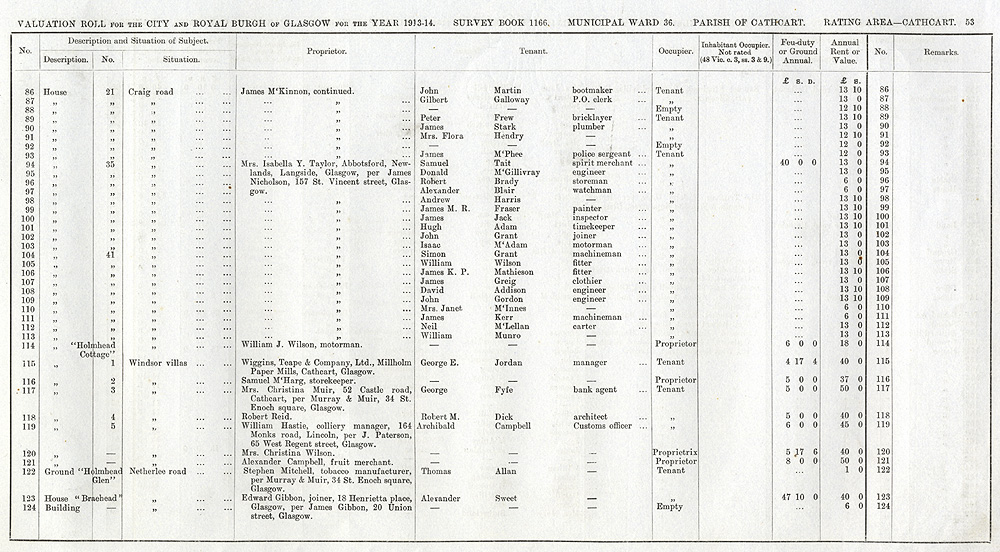 Glasgow Valuation Roll VR 1913-14, Ward 36, p053