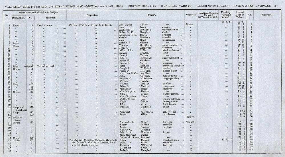 Glasgow Valuation Roll VR 1913-14, Ward 36, p063
