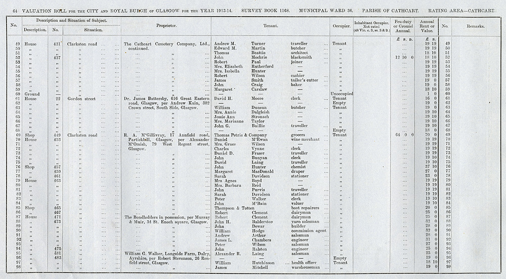 Glasgow Valuation Roll VR 1913-14, Ward 36, p064