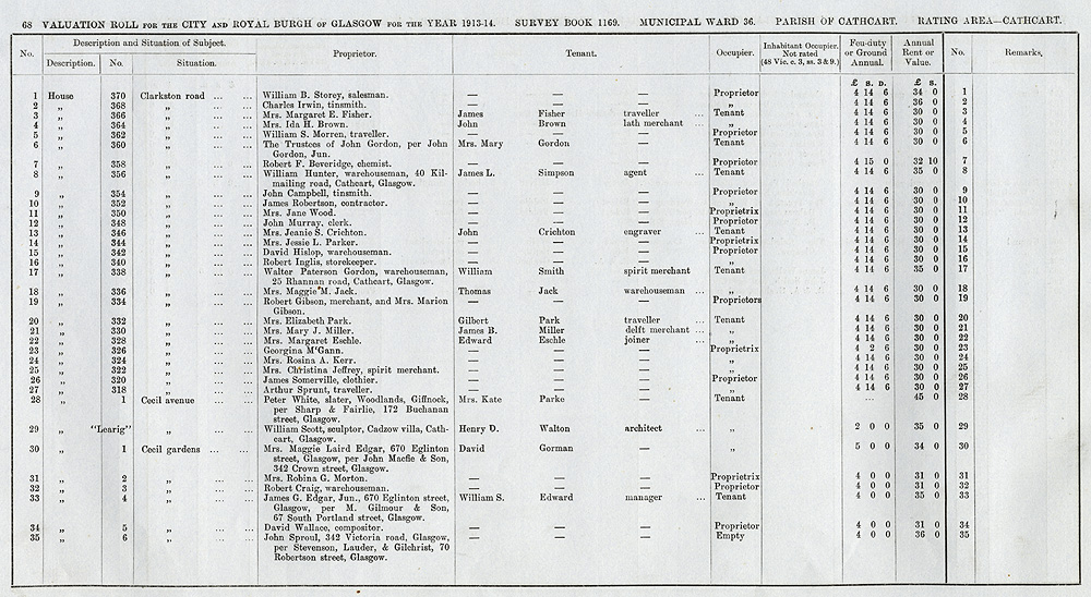 Glasgow Valuation Roll VR 1913-14, Ward 36, p068