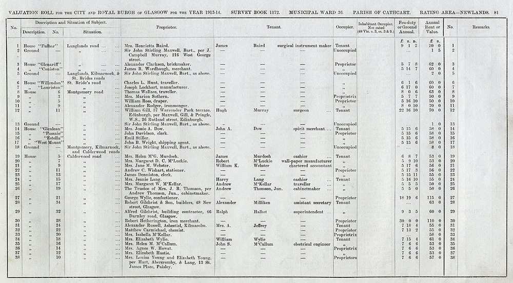 Glasgow Valuation Roll VR 1913-14, Ward 36, p081