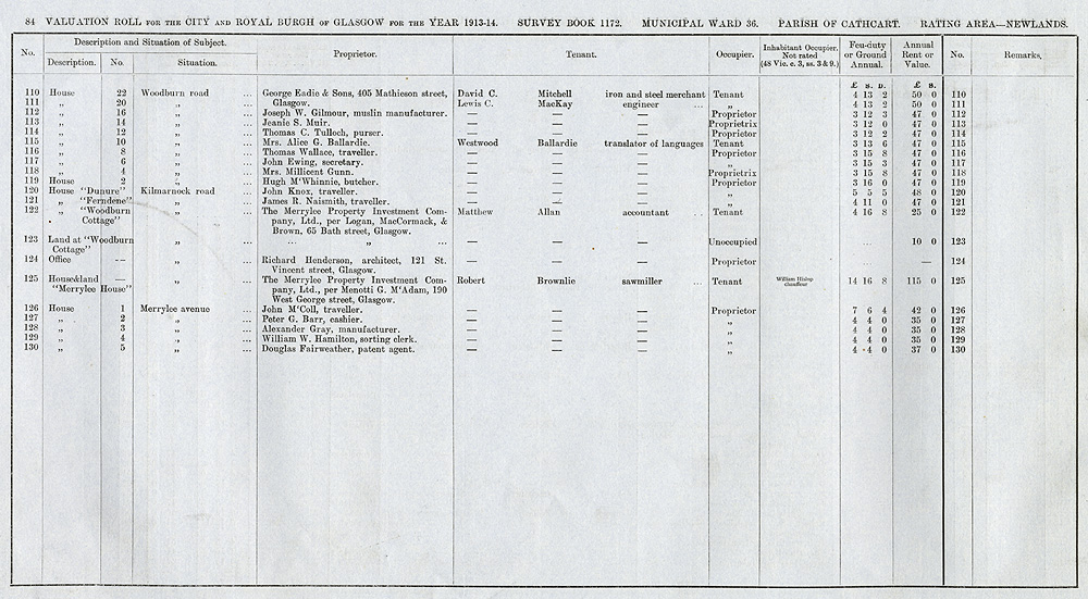 Glasgow Valuation Roll VR 1913-14, Ward 36, p084