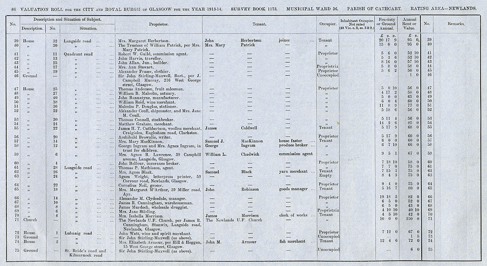 Glasgow Valuation Roll VR 1913-14, Ward 36, p086
