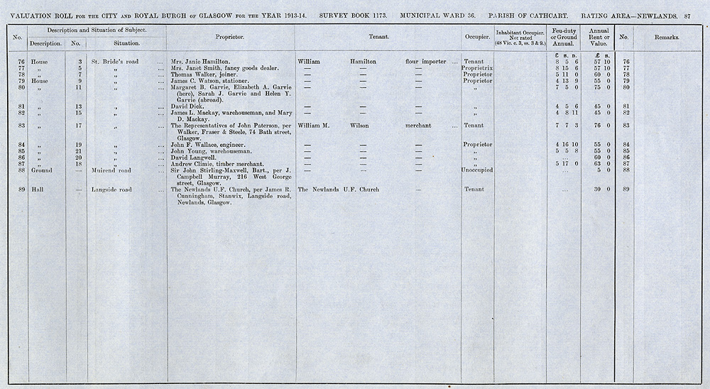 Glasgow Valuation Roll VR 1913-14, Ward 36, p087