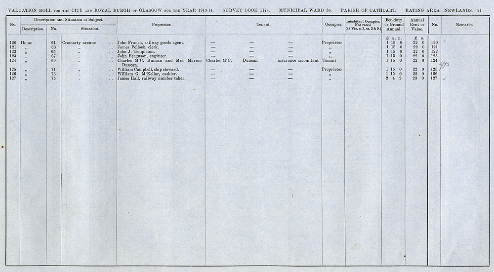 Glasgow Valuation Roll VR 1913-14, Ward 36, p091