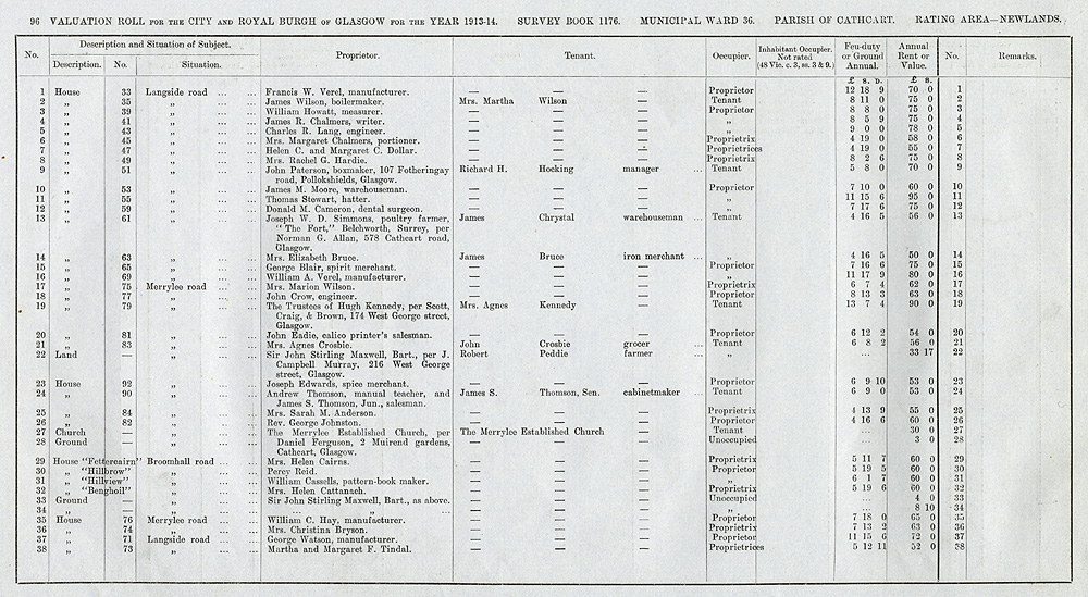 Glasgow Valuation Roll VR 1913-14, Ward 36, p096
