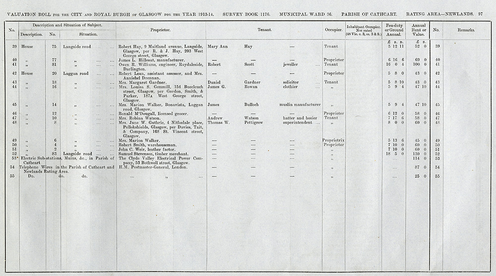 Glasgow Valuation Roll VR 1913-14, Ward 36, p097