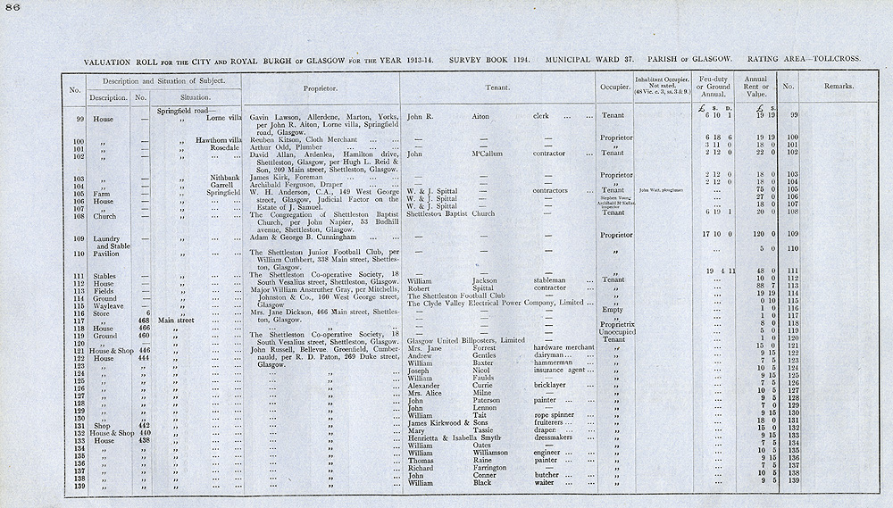 Glasgow Valuation Roll VR 1913-14, Ward 37, p086