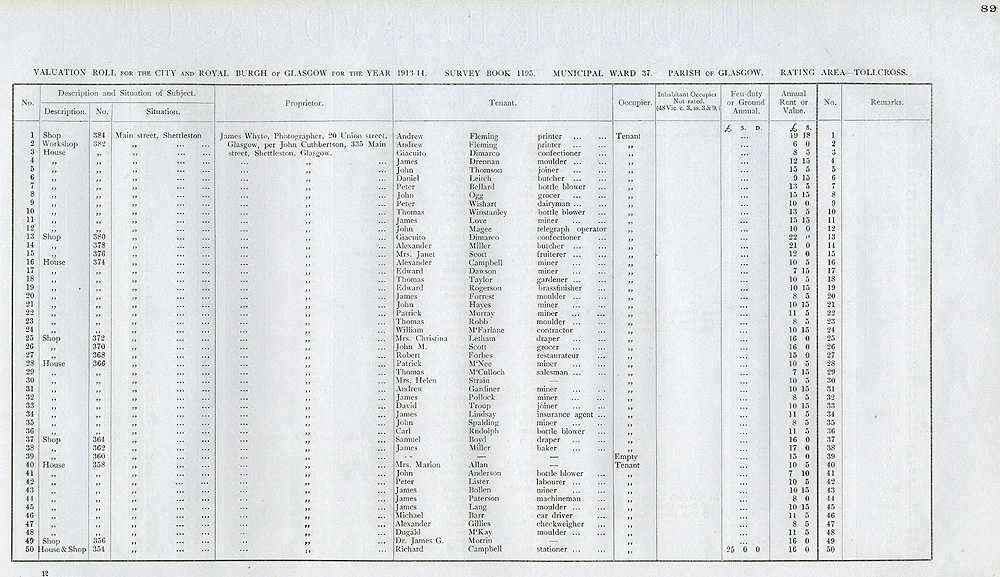 Glasgow Valuation Roll VR 1913-14, Ward 37, p089