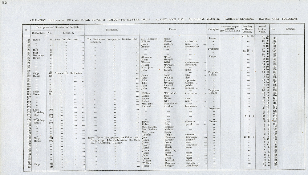 Glasgow Valuation Roll VR 1913-14, Ward 37, p092
