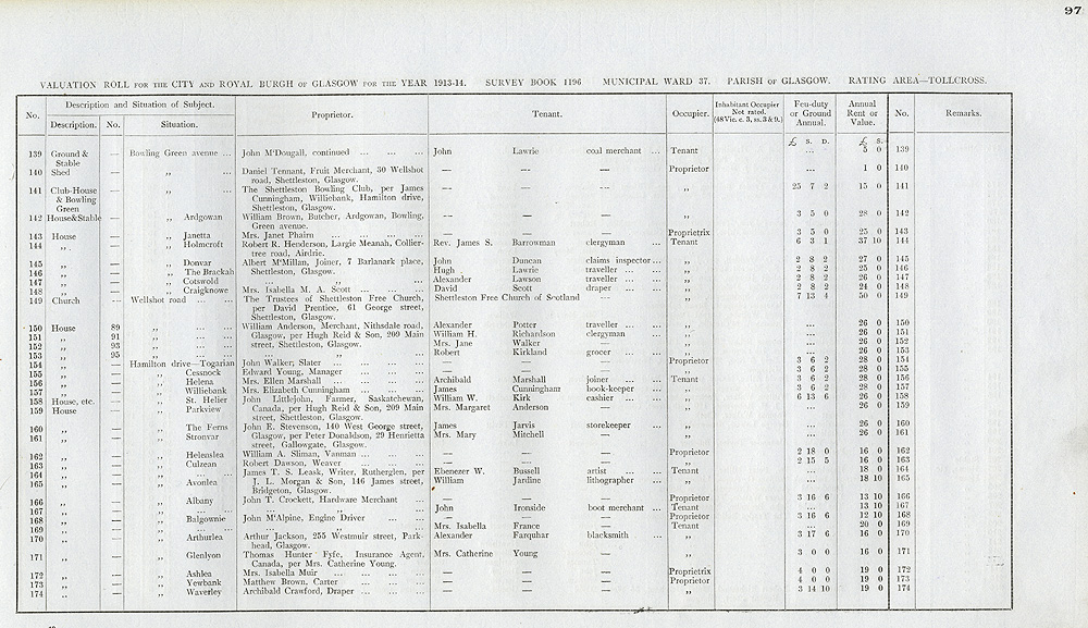 Glasgow Valuation Roll VR 1913-14, Ward 37, p097