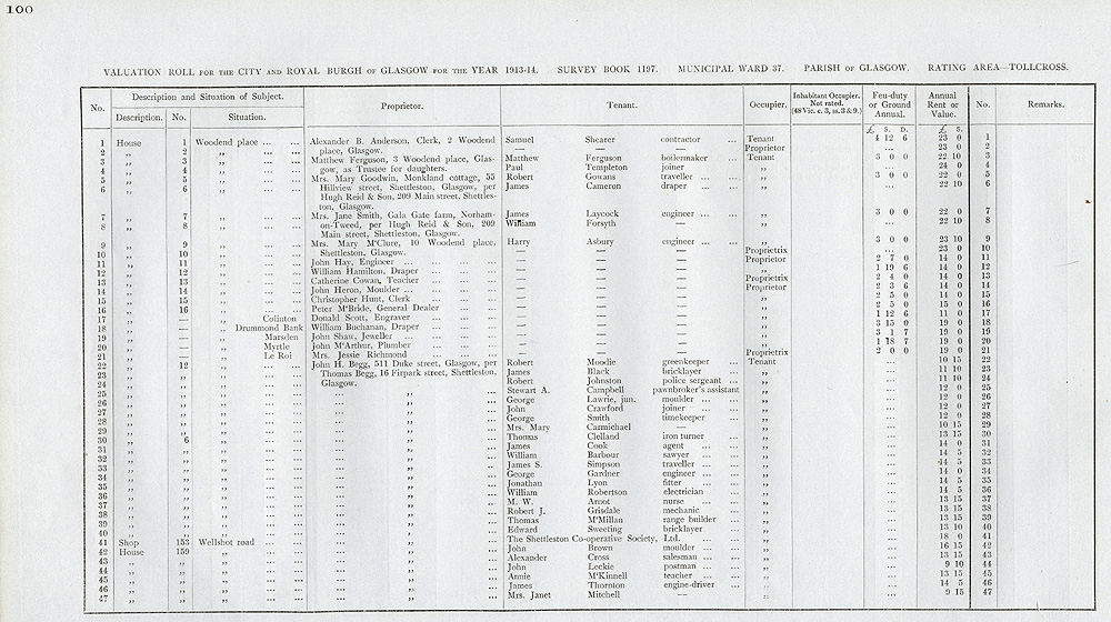 Glasgow Valuation Roll VR 1913-14, Ward 37, p100