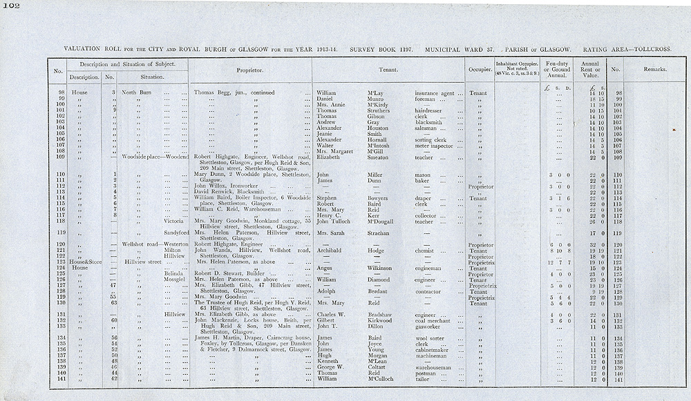 Glasgow Valuation Roll VR 1913-14, Ward 37, p102