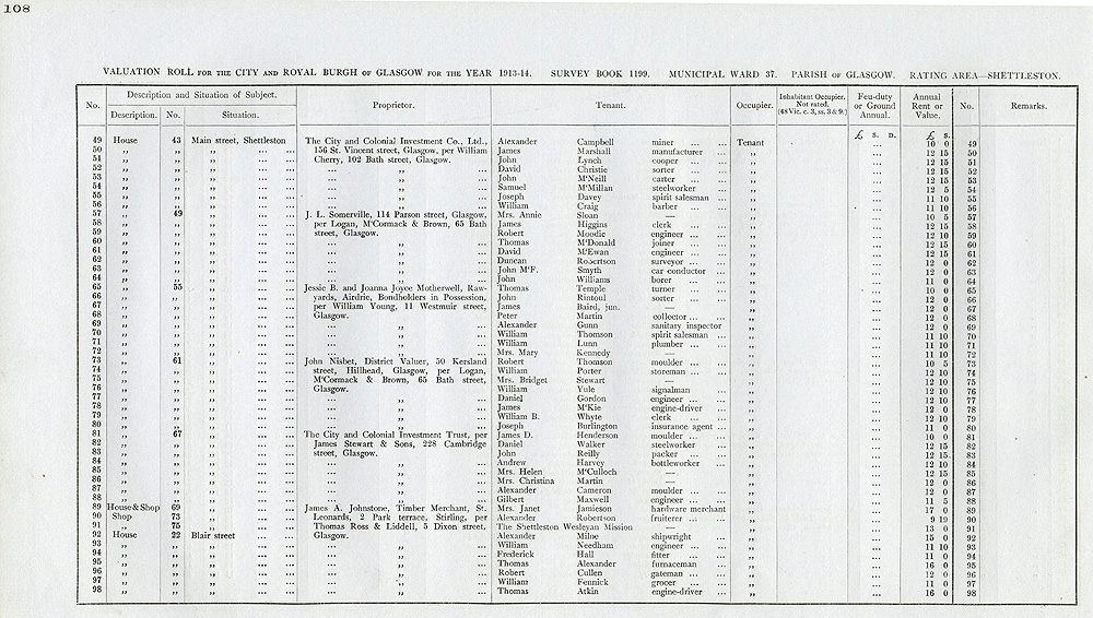 Glasgow Valuation Roll VR 1913-14, Ward 37, p108