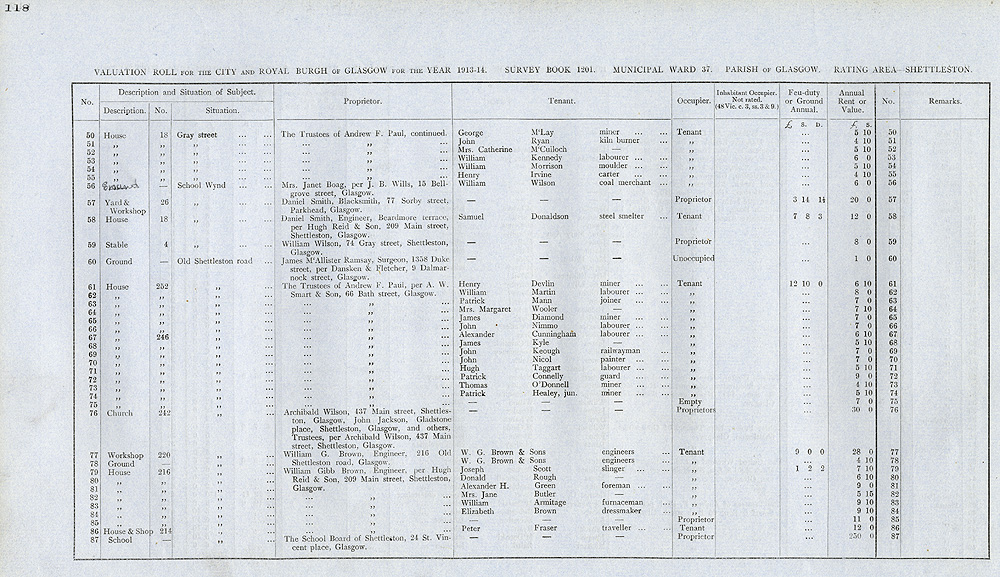Glasgow Valuation Roll VR 1913-14, Ward 37, p118
