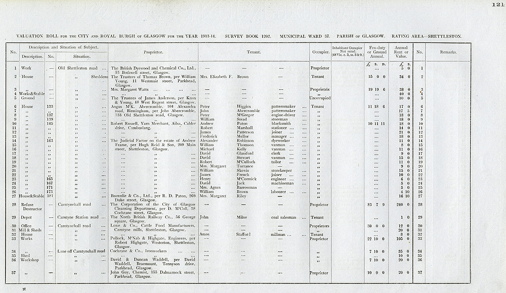 Glasgow Valuation Roll VR 1913-14, Ward 37, p121