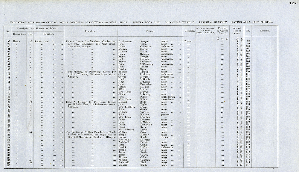 Glasgow Valuation Roll VR 1913-14, Ward 37, p127