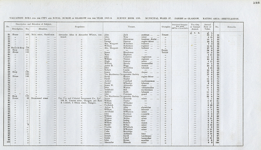 Glasgow Valuation Roll VR 1913-14, Ward 37, p135