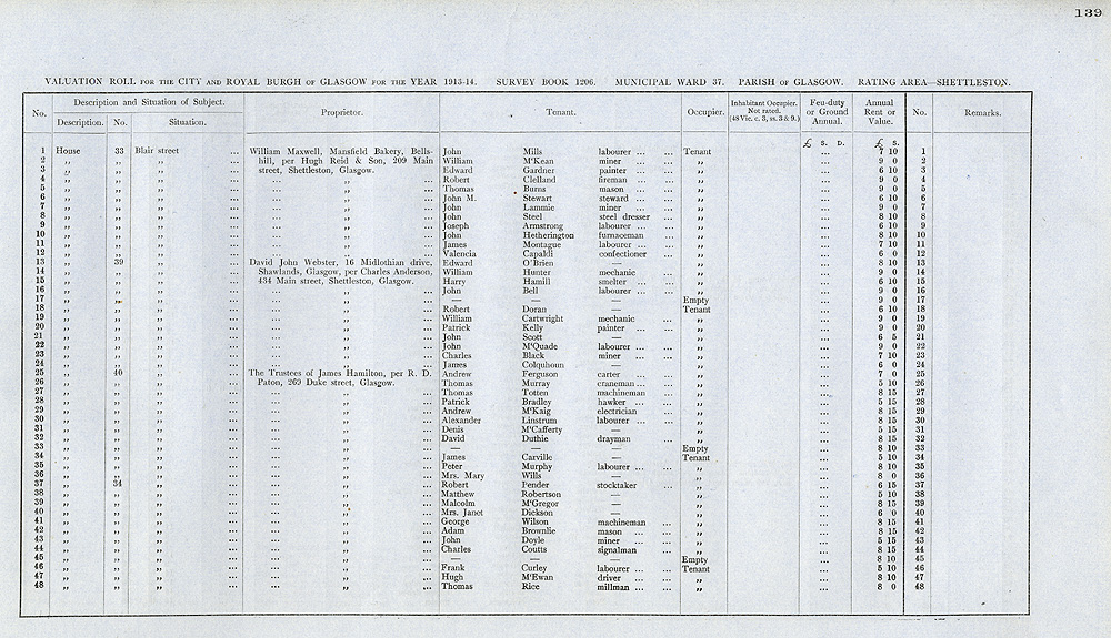 Glasgow Valuation Roll VR 1913-14, Ward 37, p139